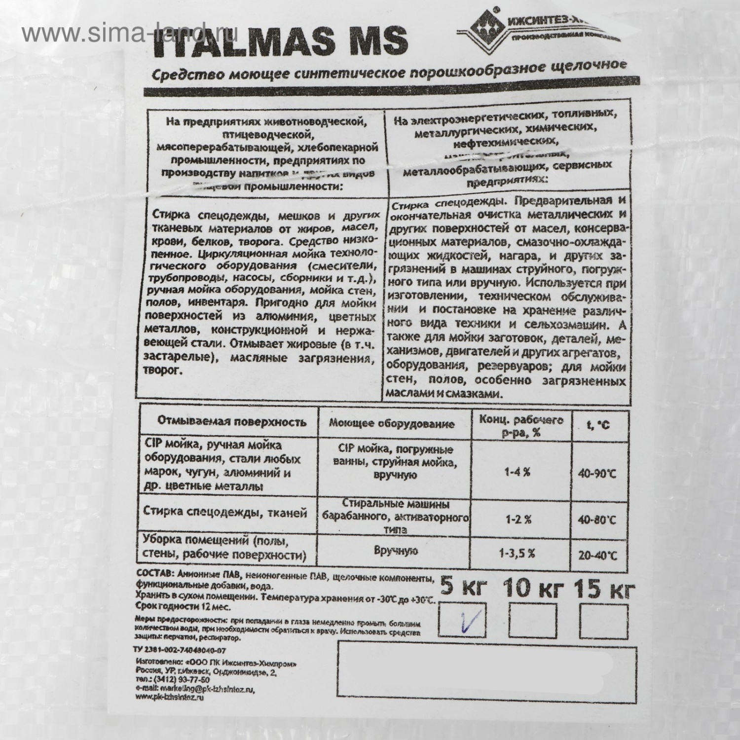 Стиральный порошок «Италмас» — это профессиональное синтетическое моющее средство (СМС), которое часто выбирают государственные учреждения и производственные предприятия из-за его строгого соответствия ГОСТ и отличных дезинфицирующих свойств.