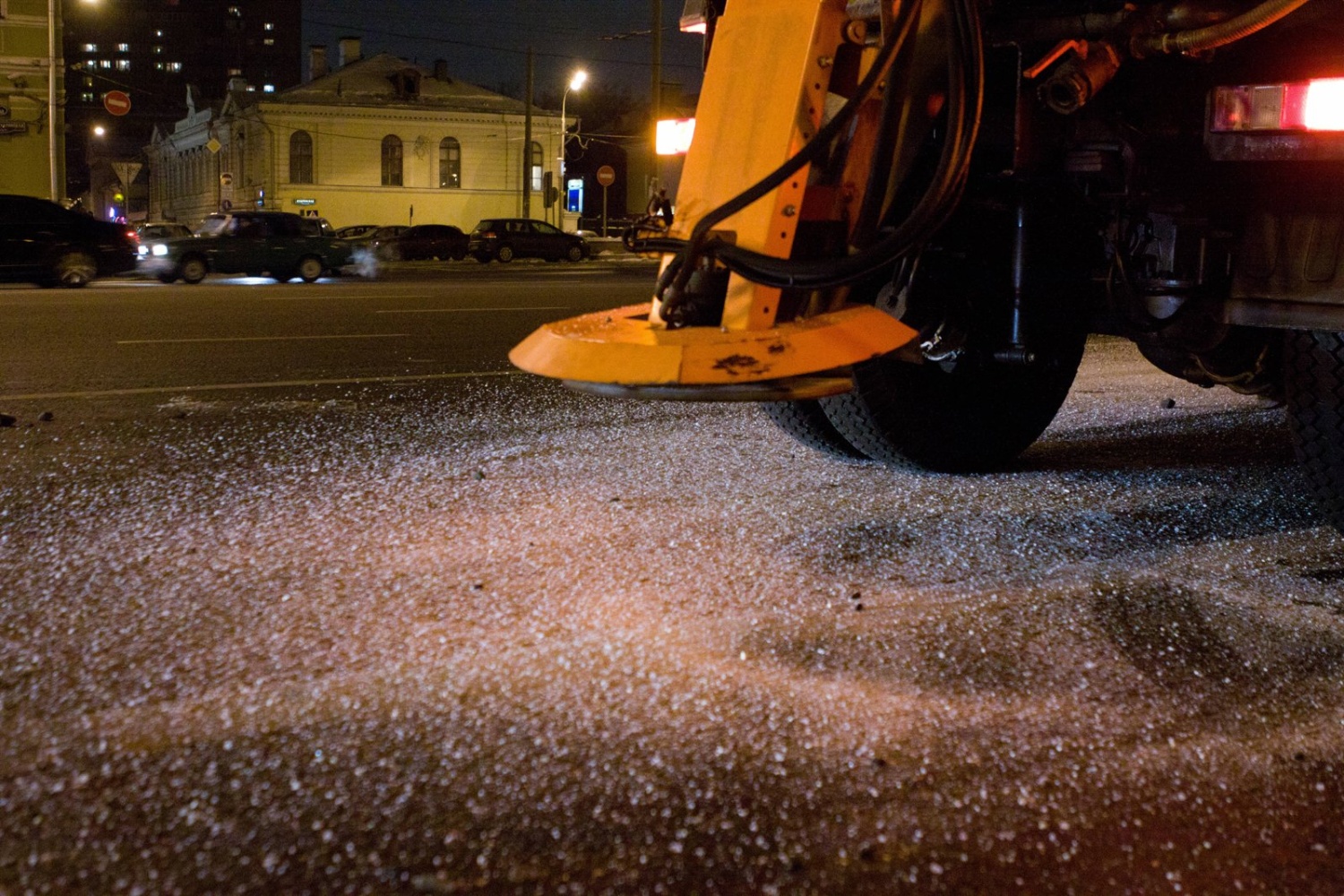- Профилактика (перед снегопадом): 20–40 г/м². Предотвращает образование ледяной корки и прилипание снега к асфальту.